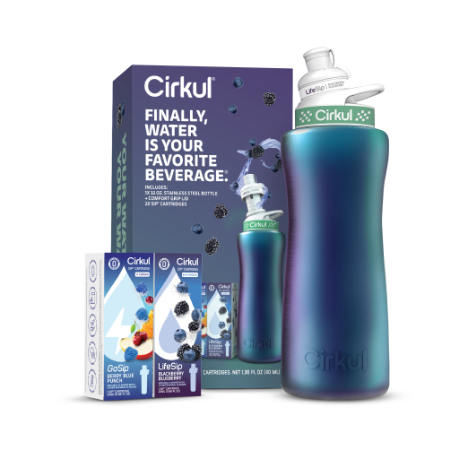 The 32oz. Chameleon Stainless Steel Bottle and Lid mirror the magical wonder of the color-shifting chameleon. This Starter Kit includes an insulated bottle that keeps your water ice-cold all day and a flavor cartridge system that makes drinking water more delicious, fun, and personalized.
